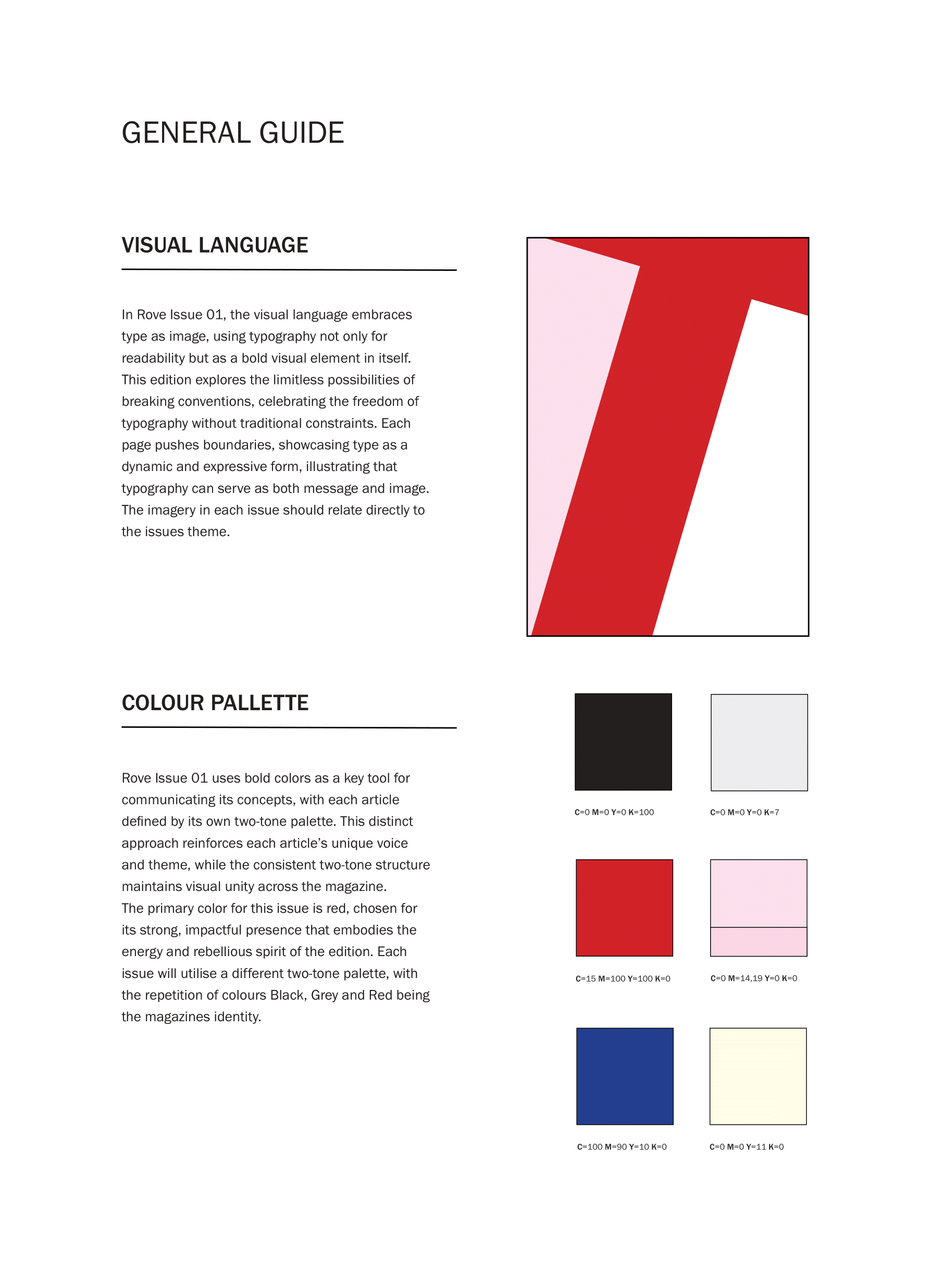 "Rove" is a magazine driven by the concept of exploration and creative freedom. Inspired by the idea of wandering without a fixed destination, it embraces the notion that design is not limited to traditional functions, but can be an expressive and transformative force.